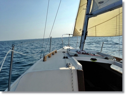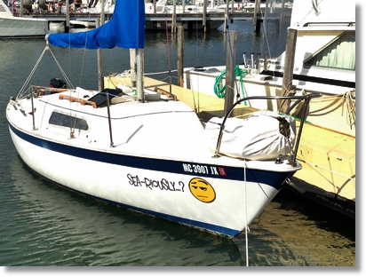 ![]() There's a lot more that I did when fixing up Sea-Riously...? Too much to list here at this time. But, I'm sure I'll update this page ocassionally with more as I recall it! Here's some pics from the summer of 2014. Notice the new teak hand rails, main sail cover and Nissan outboard. Plus I added a small solar charger.